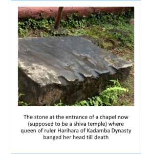 When the Portuguese invaded Chandrapur, the then Kadamba ruler, Harihar died in the battle. According to the legend, he was killed since the villagers did not protect him in the battle. His queen committed suicide. However, out of anger, before that, she stamped her feet on a stone outside the temple and declared that from then on, every woman in the village would become a widow. The stone with her footprints is still preserved. The queen’s curse made neighbouring villages stop giving their daughters to the men of Chandrapur and its people fell on hard times. As a kid I always knew Chandor as a village with a curse!!!